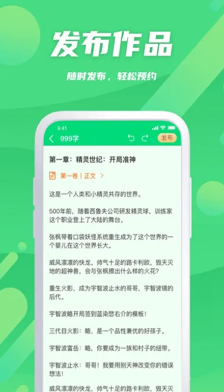 3. 提供便捷的写作发布体验,手机便可直接发布章节。