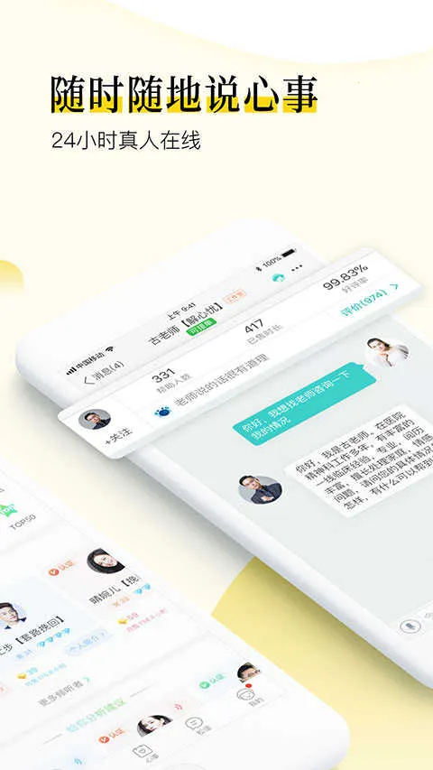 3. 以听得见的陪伴为核心,724小时真人在线响应,无论深夜情绪波动,还是清晨突发困扰,随时发起倾诉,即时获得回应,让每一次倾诉都成为疗愈的开始。