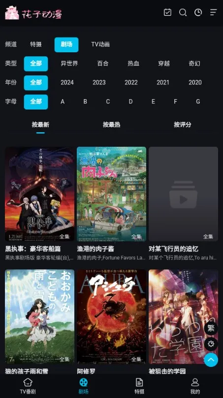 1. 资源丰富多样,涵盖日漫番剧、剧场版、国漫、欧美动画等,像鬼灭之刃、咒术回战、灵笼等热门作品应有尽有。