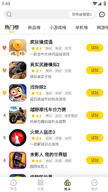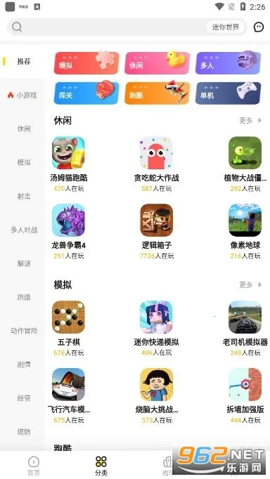 2. 所有游戏都进行了分类,您可以直接按照分类进行搜索。分类清晰,涵盖休闲益智、角色扮演、竞技射击等多种类型,满足不同用户需求。