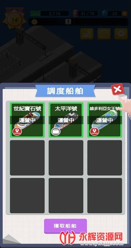 7、你要不断的获取新的船舶,这样就能接待更多的旅客;