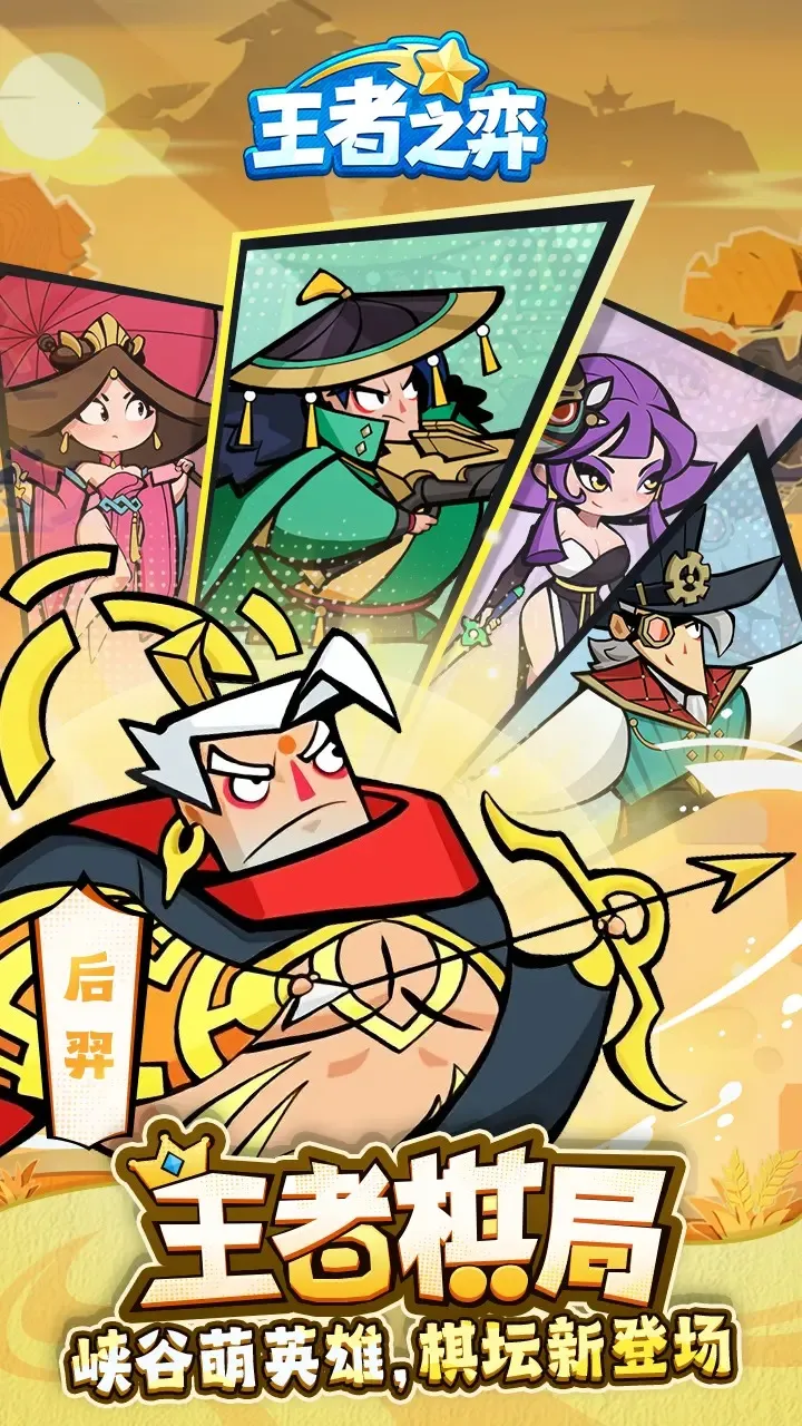 1. 经典角色齐聚,熟悉的英雄化身棋子,后羿貂蝉韩信等联手,组建专属阵容征战棋盘。