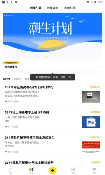 2. **功能丰富**:聚合实时热点榜单、营销日历、话题趋势预测,联动企鹅学院提供选题建议、写作模板与运营课程,持续激发创作灵感。