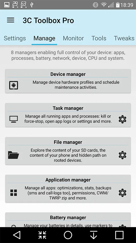 1. **功能强大**:安卓调谐器集电量显示、系统调整、多任务切换等多种功能于一体,能帮助用户全面管理和优化手机,详细了解手机性能与状态。