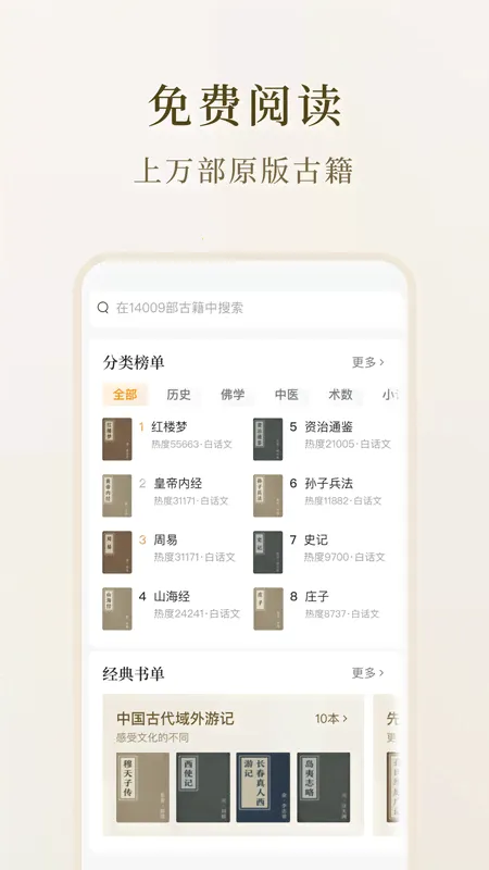 3. 此版本免费公益,海量古籍资源向公众开放,降低接触门槛。未来三年还将逐步完成万部古籍智能整理,涵盖儒道佛核心书目,是传统文学爱好者的理想查询工具。