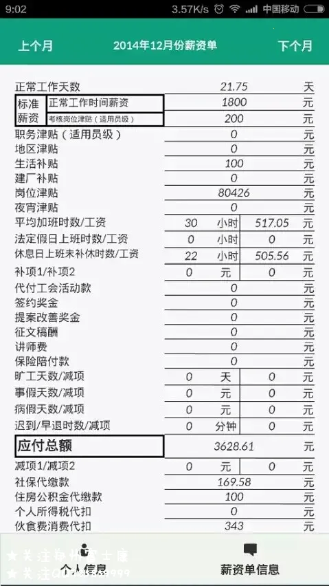 3. 界面简洁明了,操作流程直观,便于员工快速掌握工资构成。