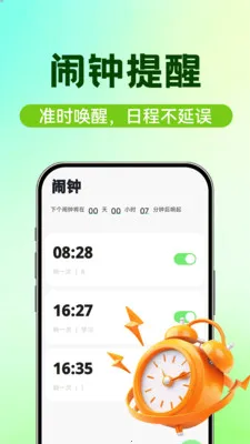 其闹钟功能可自定义响铃时间、重复周期和铃声,还能添加提醒标签,方便高效安排日程。