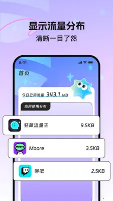 4. 显示流量分布,清晰一目了然,方便用户了解流量详情。