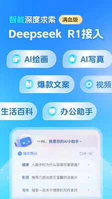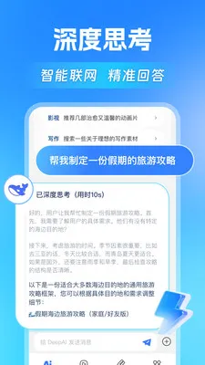 1、凭借先进的 DeepseekR1 技术,可提供精准答案,还能依据个性化需求深度思考与智能联网,让每次查询都获合适回应。
