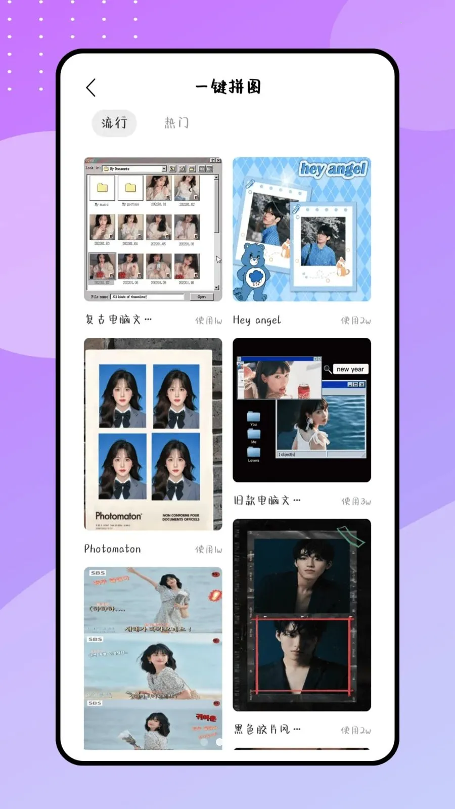 海量热门拼图模板一键套用,能快速搞定朋友圈氛围感排版,让图片更具特色。