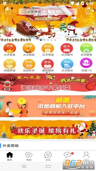 2. 有美食外卖、生活娱乐、本地商城、同城跑腿等丰富服务。
