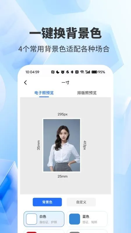 2. 智能背景替换,图像优化超便捷。可自由更换背景颜色,适应不同证件要求,还能对照片进行有效优化。