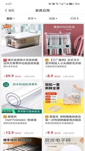 商品种类划分详细,还有众多特色商品可选,优惠券和商品信息实时更新。