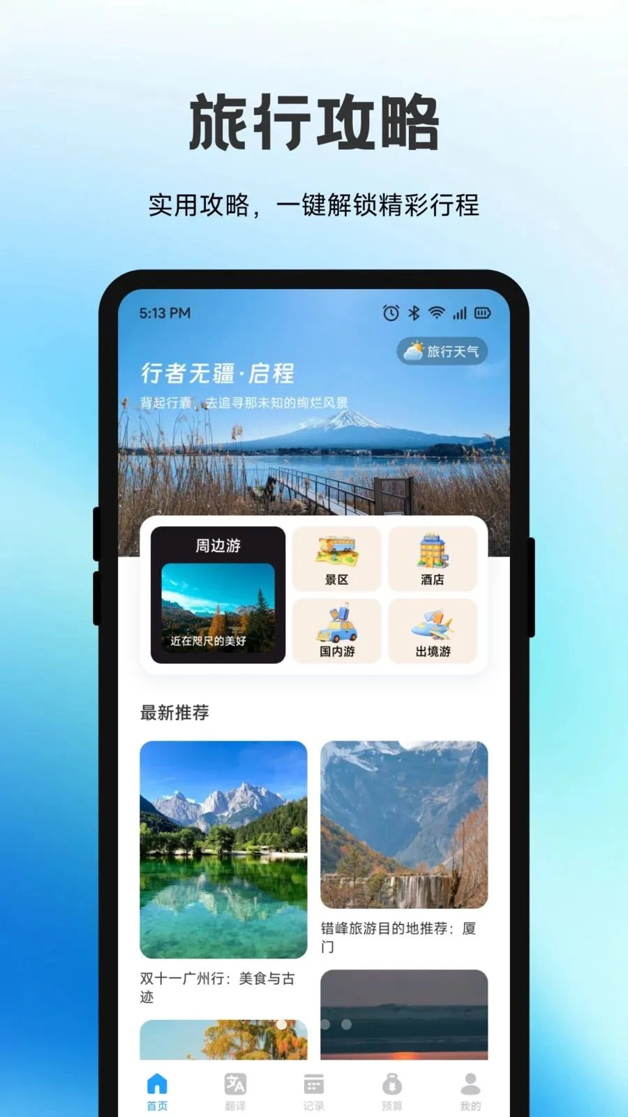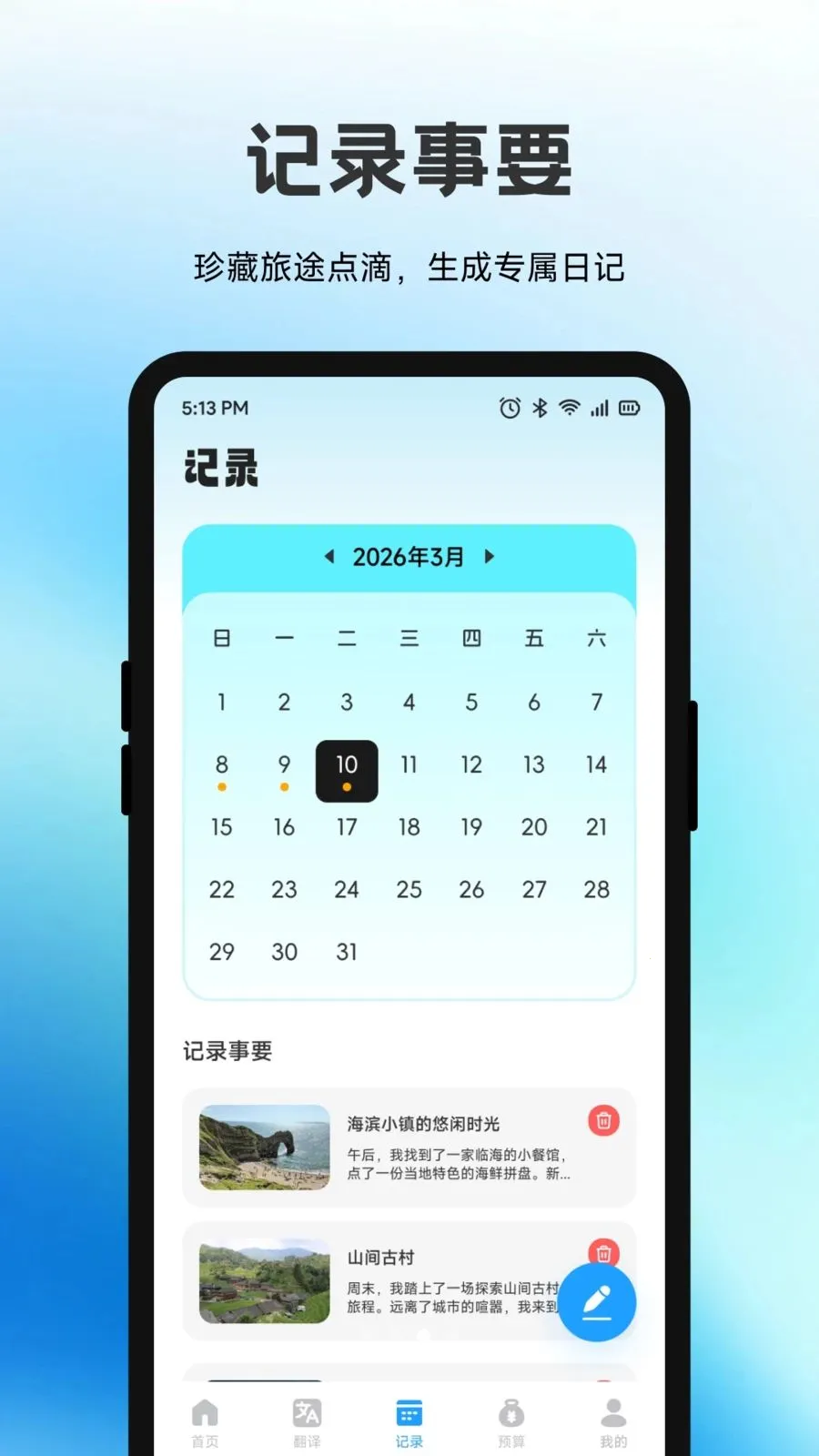 4. 旅途记录珍藏美好瞬间,留下难忘回忆。从攻略翻译到规划记录,一站式搞定旅行全流程,让出行轻松顺畅。