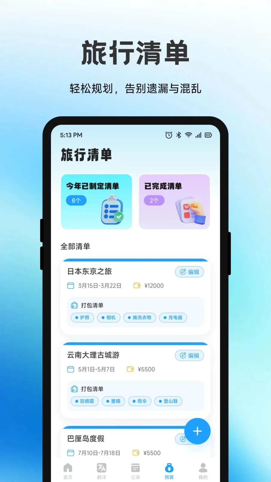智能旅行清单告别遗漏。出行前准备不再慌乱,按照清单一一准备,确保旅行万无一失。