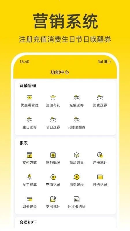2. 专业会员管理,构建完善体系,记录全维度信息,自定义等级折扣与积分规则,唤醒沉睡客户,提升复购率。