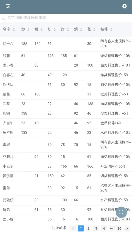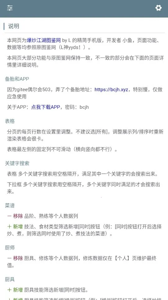 1. 提供菜谱与角色数据查询功能,能快速知晓游戏内容结构。