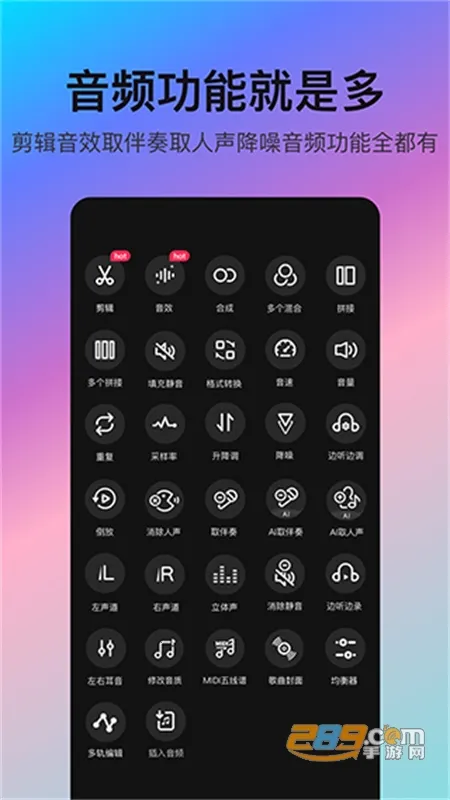1. 功能强大全面,集音频剪辑、转换、降噪、取伴奏、合成等多种功能于一体,满足各类音频处理需求。