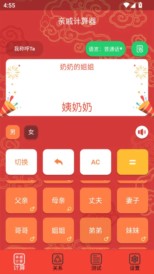 这类软件操作简单,只需输入你和亲戚之间的关系,比如“爸爸的妈妈的爸爸”,马上就能得出“曾外祖父”这样准确的称呼。它不仅能处理简单的亲戚关系,复杂的家庭关系也不在话下,比如对于新婚人士,能算出如何称呼配偶的亲戚。而且还支持语音播报,普通话不好也不怕。