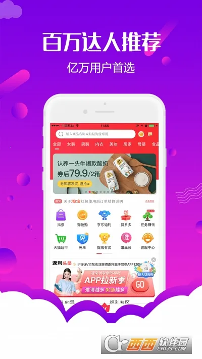 3. 覆盖淘宝、京东、拼多多三大电商,全平台商品均可返利。