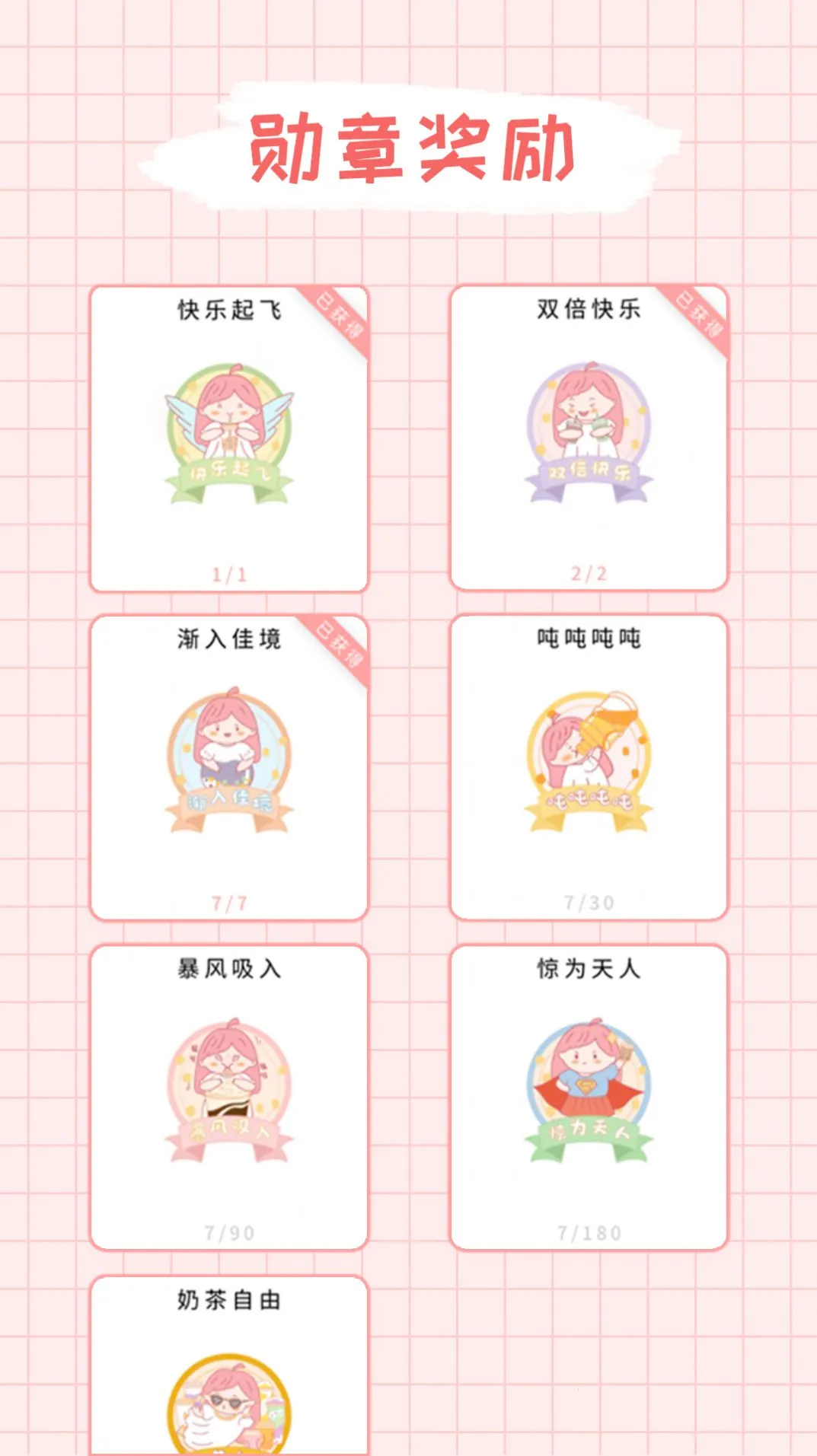 4. 勋章体系促打卡:通过打卡持续激励自己,收获成就感,还能与朋友比一比。