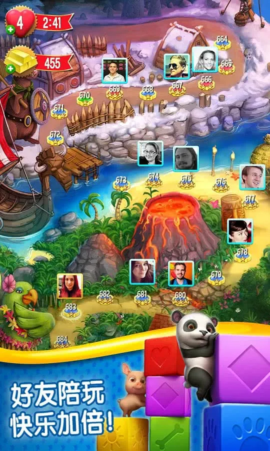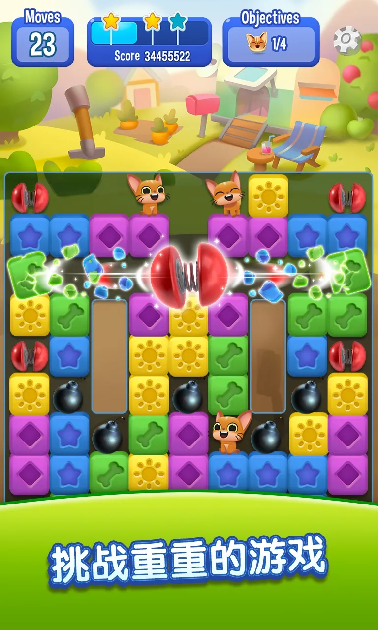 1. 玩法丰富有趣,以经典三消为核心,融入宠物养成与关卡挑战。需匹配四个或五个相同元素生成特殊道具,观察棋盘找最佳路径,合理释放宠物技能,完成关卡解锁并升级宠物。