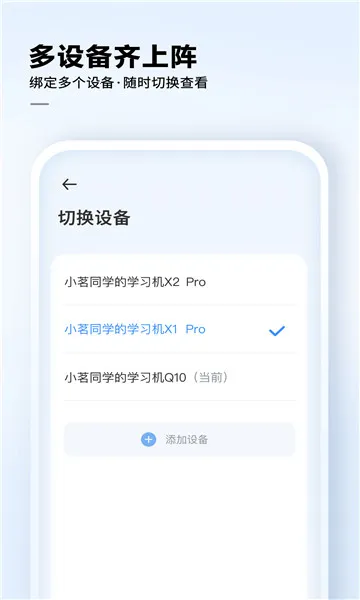 3. 支持绑定多个学习设备,无论是学习机、平板还是手机,都能随时切换查看孩子学习情况,实现便捷的全方位监管。