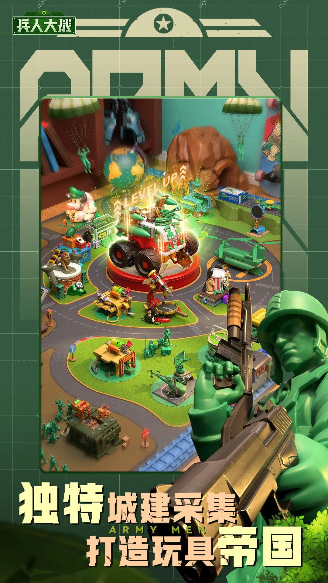 兵人大战最新手机版是玩具题材战略手游,以绿色兵人故事为蓝本,画面童真媲美端游。有无限制跨服PK玩法,可与全球玩家跨服战争,还有丰富兵种武器及精彩玩法等你来体验。