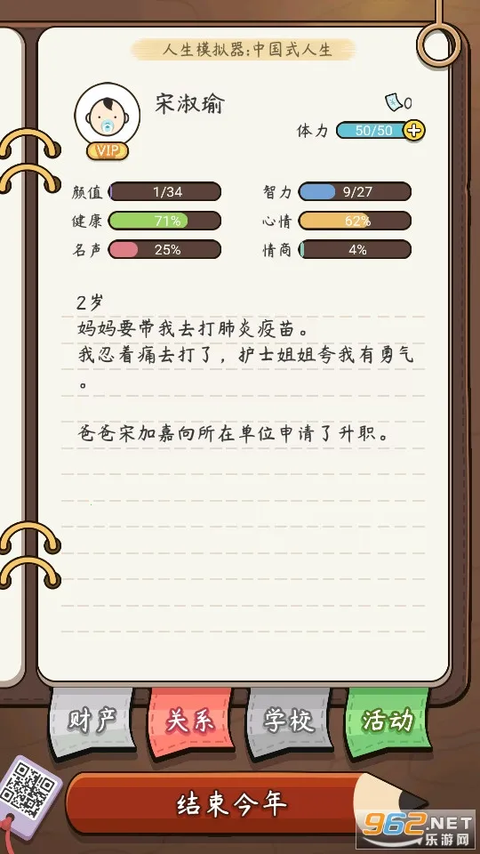 3. 人生旅程充满随机事件,如疾病、意外、家庭困难等,应对挑战影响属性发展与人生走向。