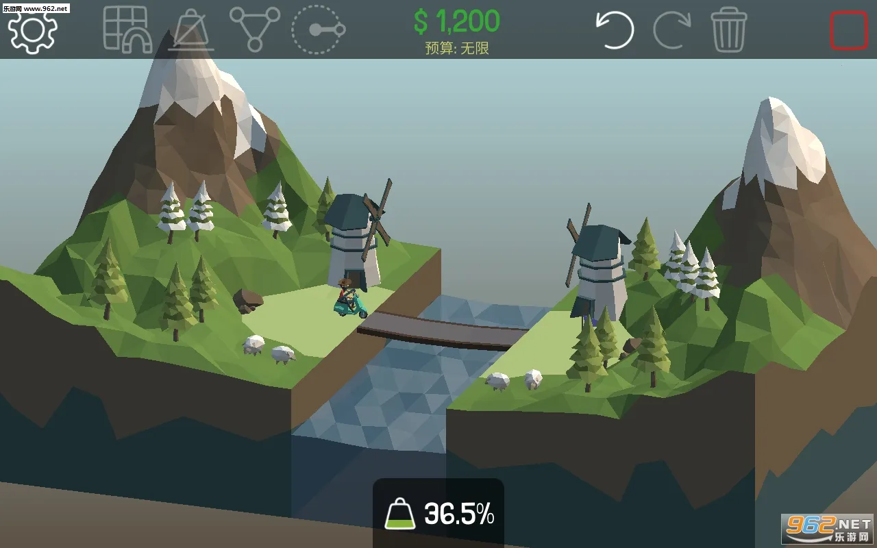 2. 玩法中你可以用不同材料建桥如木头钢铁和钢缆,每种材料都有不同的强度和浮动的价格
