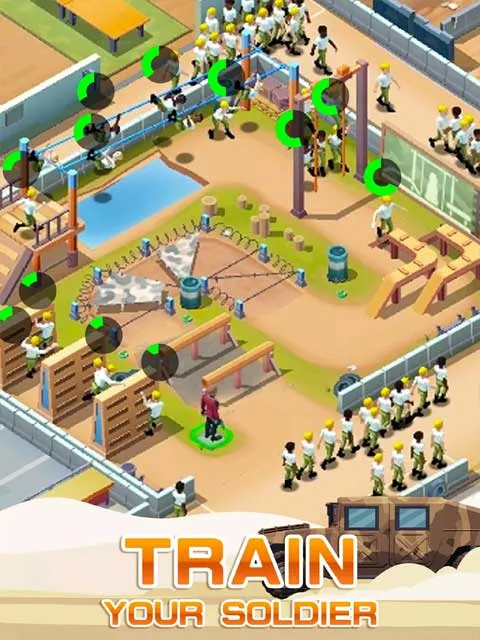 陆军大亨内置MOD菜单最新版本是一款竖屏卡通风格模拟经营手游。玩家扮演军阀管理者建设军队基地,招募训练士兵,通过策略塔防战斗获金币,解锁设施壮大实力,还有独特玩法与丰富特色。