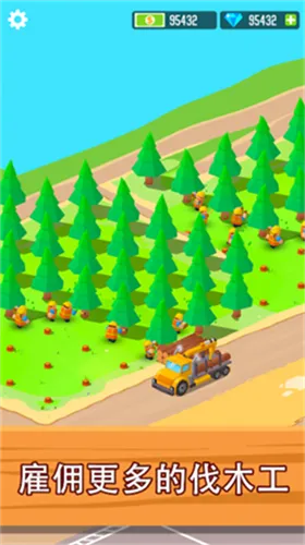 木材公司是一款模拟经营手游,玩家从经营小伐木场起步,通过雇佣管理工人、购置升级设备等发展商业体系,有完整循环机制,注重可持续经营,玩法轻松,画风清新。