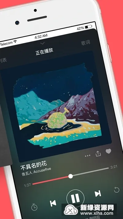 4. 时尚简洁播放器,听音乐无负担,具备快速评论、便利分享、动态歌词、睡眠模式、多种播放模式等贴心功能,还能收藏喜爱歌曲、留言评论,更有漫游电台推荐相似音乐,带来不间断的音乐享受。
