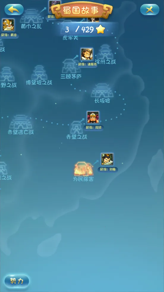 3. 武将培养体验:玩家可自由选择武将进化与升品,利用道具提升能力。通过关卡获取掉落道具收集进化材料,能打造出独特战斗风格的武将,成就三国霸业。