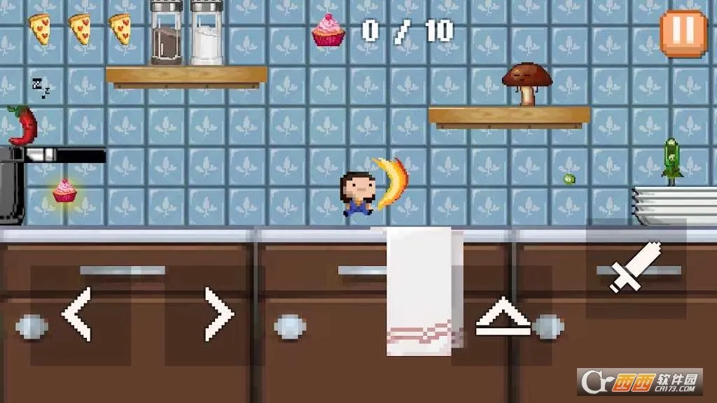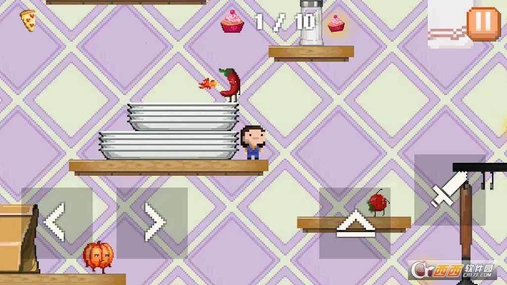 5、到达顶层后,这里会有好多小蛋糕,收集完成10个就通关啦,注意不要碰到楼下的小西红柿哦。