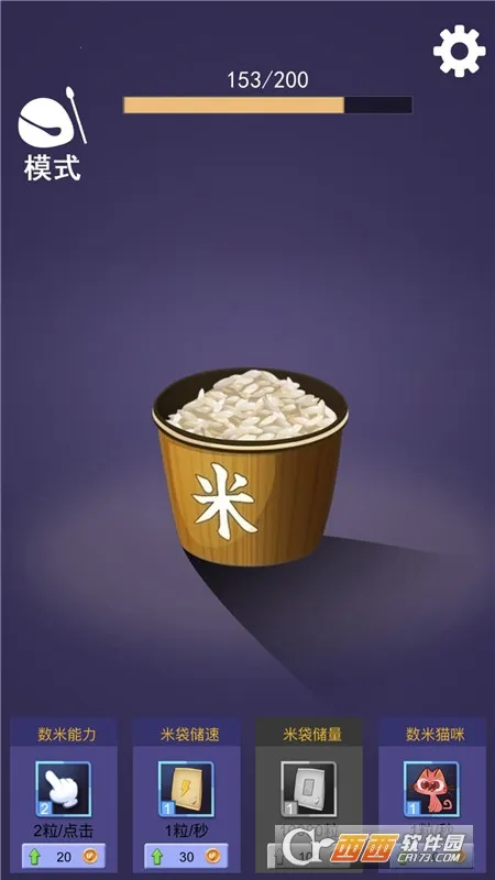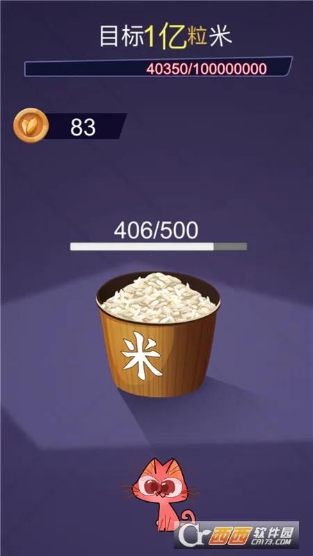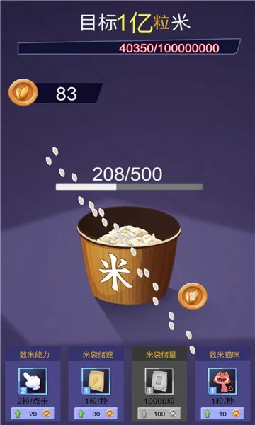 1. 核心玩法是数米,开局屏幕上方就明确显示目标,要数满一亿粒米。