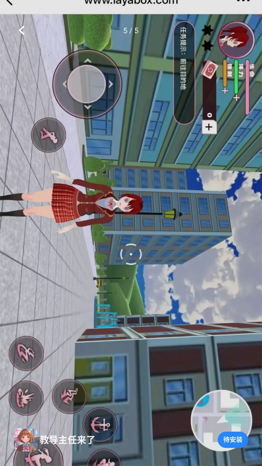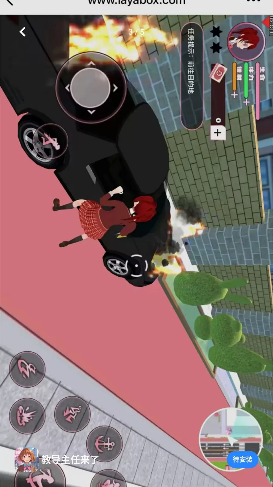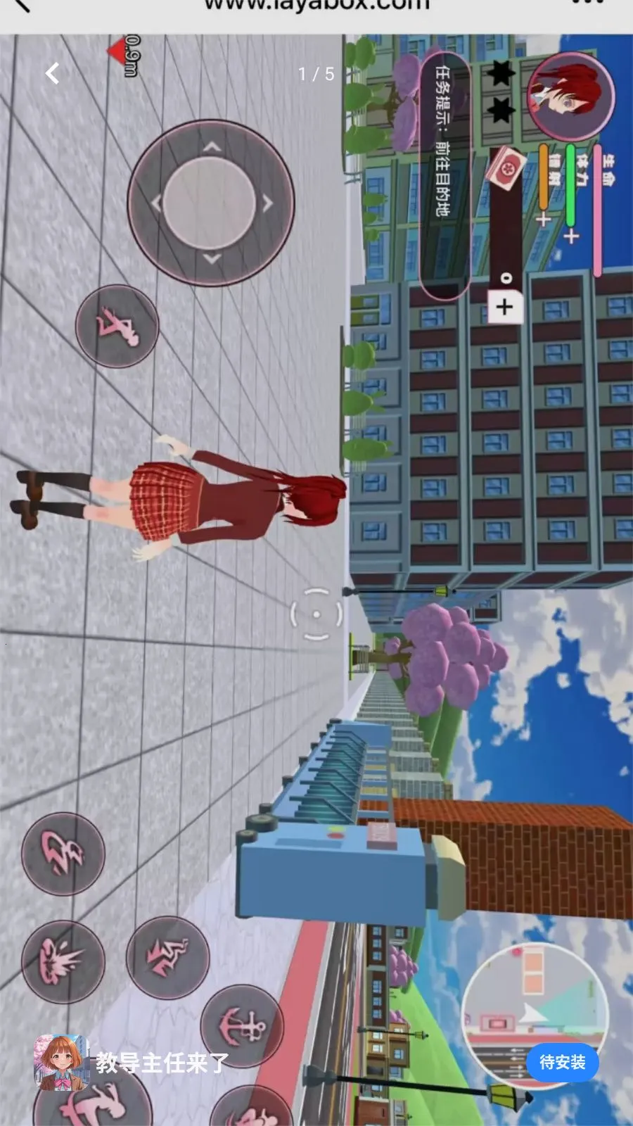 教导主任来了是一款二次元卡通风格手机游戏。玩家扮演红发少女,身着红格裙在城市街道自由探索,用虚拟摇杆控制,完成摧毁汽车等任务,界面有能力数值,融合探索与轻度动作,体验轻松有目标。