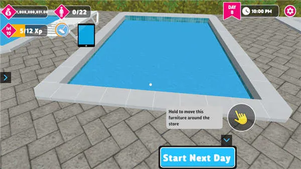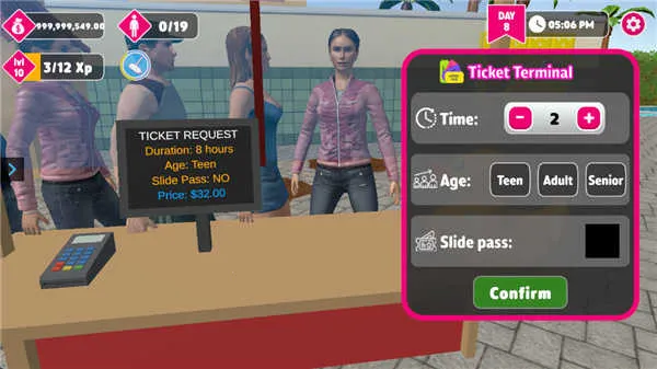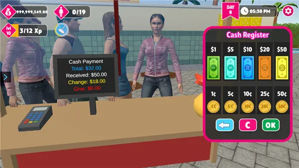 3、玩法机制方面,新手进入游戏需清理地面,去商店购物付款,等待送货时间结束拿取物品,还能切换方向放置。要根据顾客需求售票结账,顾客会自动游泳,出现溺水图标要救助。