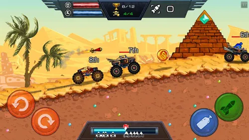 《疯狂卡车挑战赛3》是一款超刺激的赛车竞技游戏!这里有超多关卡,从古埃及到南极洲,超过60个越野赛关卡等你来挑战,还有终极头目战等你参与。游戏采用美式狂野卡通风格,画面酷炫,各类造型夸张的越野卡车超吸睛,每辆都有专属战斗特性。它融合了竞速对决与战术对抗,驾驶时左手控制前后翻滚键,右手负责加速与发射等。你能升级和定制自己的巨型卡车,提升武器装备来打破杀戮数记录。遇到对手阻挡还能发射火箭弹清除障碍。过程中可收集金币,在商店定制升级卡车。支持离线游玩,无需WiFi。想体验刺激的卡车驾驶竞速,在不同地形中挑战自我,那就快来试试《疯狂卡车挑战赛3》吧,绝对让你爱不释手!