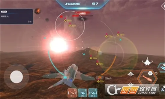 1. 空中战役最新手机版操作简单,滚动战斗机、射击破坏敌人即可,还能用左下角操纵杆改变飞行方向,刹车和助推器也能轻松控制速度,上手毫无压力。