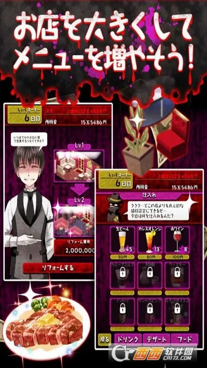 2. **趣味经营玩法**:这是暗藏门道的黑店,要引诱顾客消费,用赚的钱升级店铺、解锁酒水、招揽更帅牛郎。
